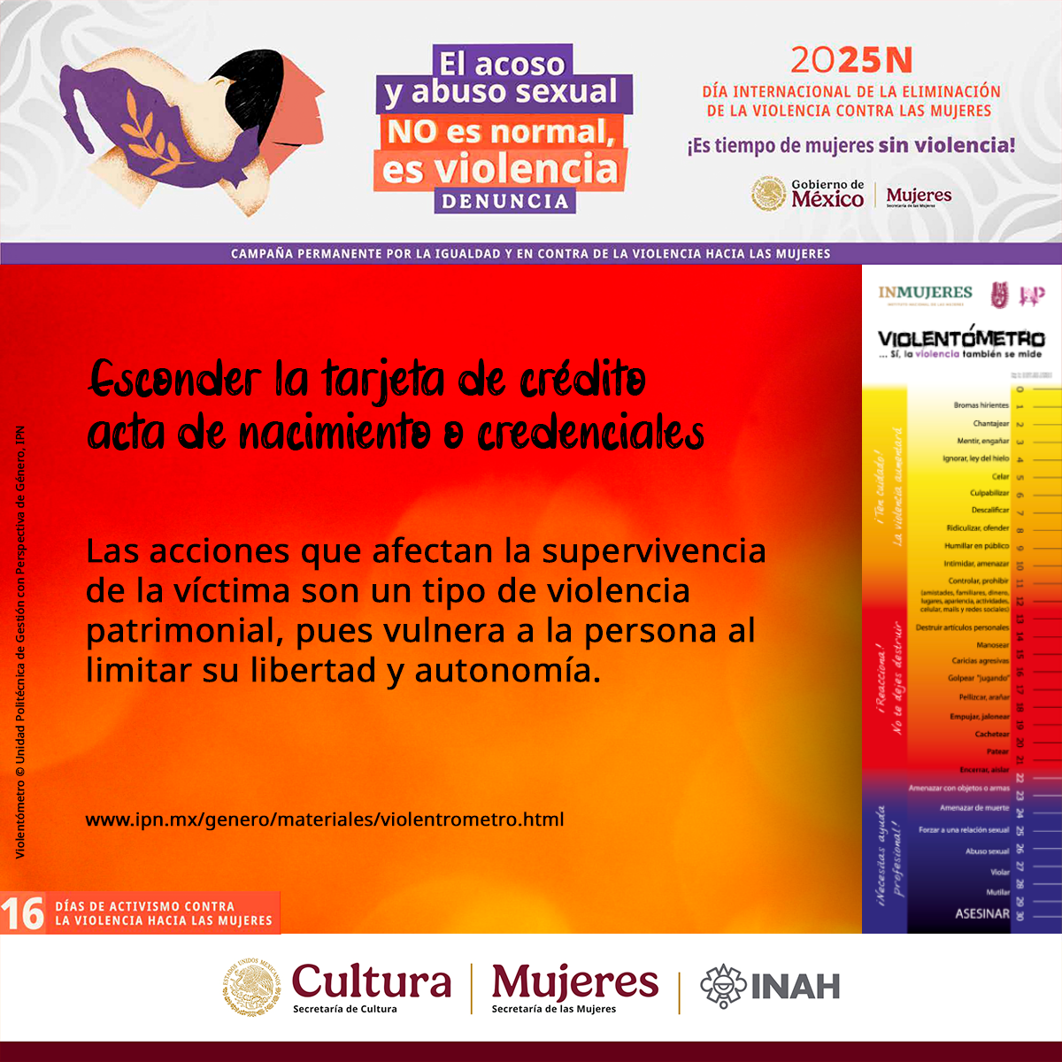 Día Internacional de la Eliminación de la Violencia contra las Mujeres. 16 días de activismo: 6 de diciembre