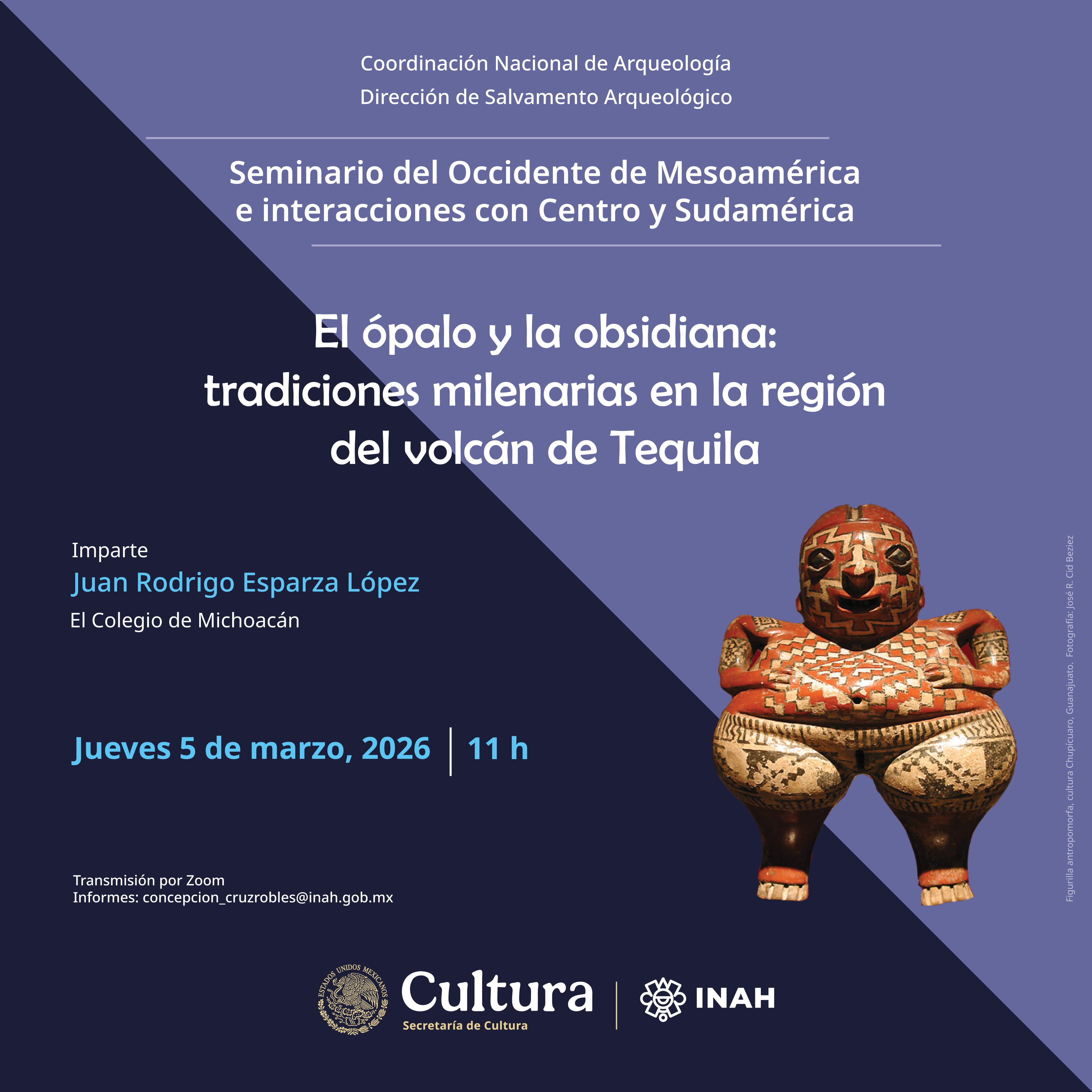 Inauguramos nuestra temporada 2026 con la participación de Juan Rodrigo Esparza López, investigador de El Colegio de Michoacán, quien bordará sobre la minería de la obsidiana y el ópalo durante la época precolombina en el Volcán de Tequila, Jalisco.